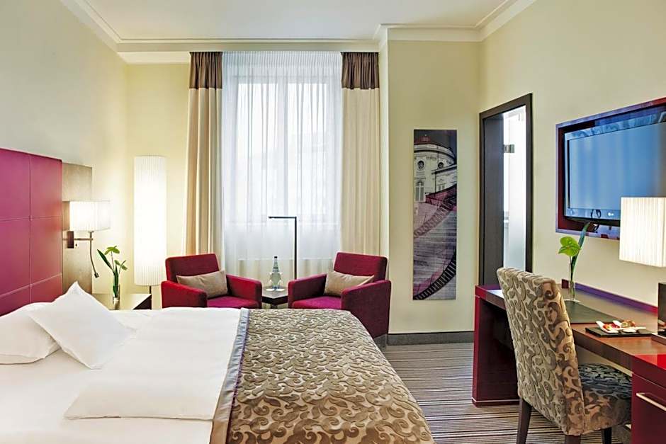 Contemporary-style room with a flat-screen TV, seating area and work desk. Guests receive a complimentary bottle of mineral water on arrival. This room may come with a double, king or queen bed.